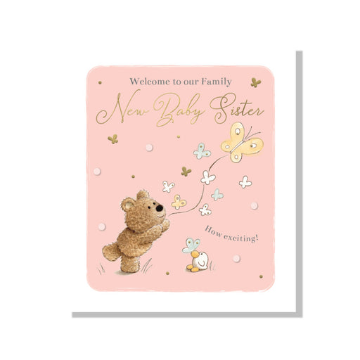 £2.09| /New Baby Sister With Teddy And Butterflies Card