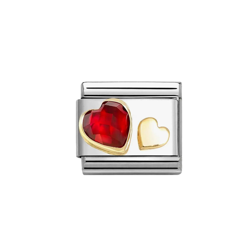 FREE DELIVERY£45.00| /NOMINATION Classic Gold Double Hearts Red CZ Charm