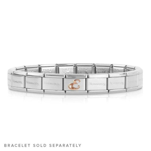 Original Charm for the Composable Classic bracelet with the Letter E in stainless steel, 9K rose gold and white Swarovski Zirconia. Every letter of the alphabet is available. Made in Italy. The letters of the alphabet: a Nomination must-have!