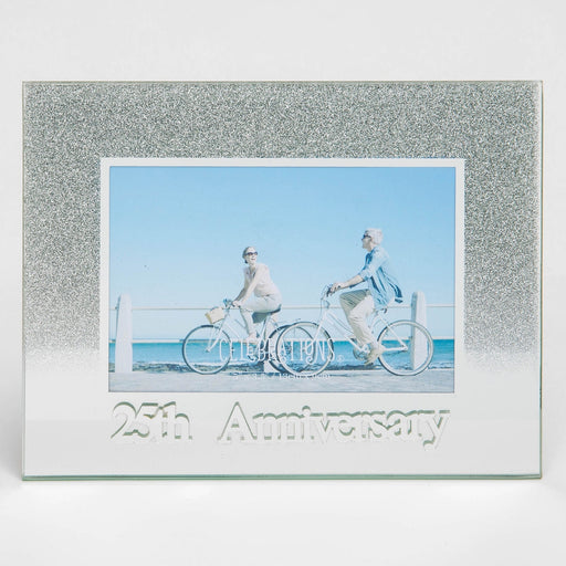 Help a special couple celebrate 25 years of marriage with this silver glitter and mirror glass photo frame with a silver acrylic 3D title.