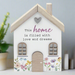 Bring warmth and charm to your home with this ‘Home’ Wooden House Ornament Plaque. Crafted in a delightful house shape with natural wood accents, this freestanding plaque features intricate window and door details, delicate floral designs, and a heartfelt message: